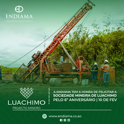 Em nota, por ocasião do 6º aniversário da Sociedade Mineira do Luachimo, Ganga Júnior enaltece os esforços empreendidos pelo seu Conselho de Gerência, para manter os níveis de produção da mina.