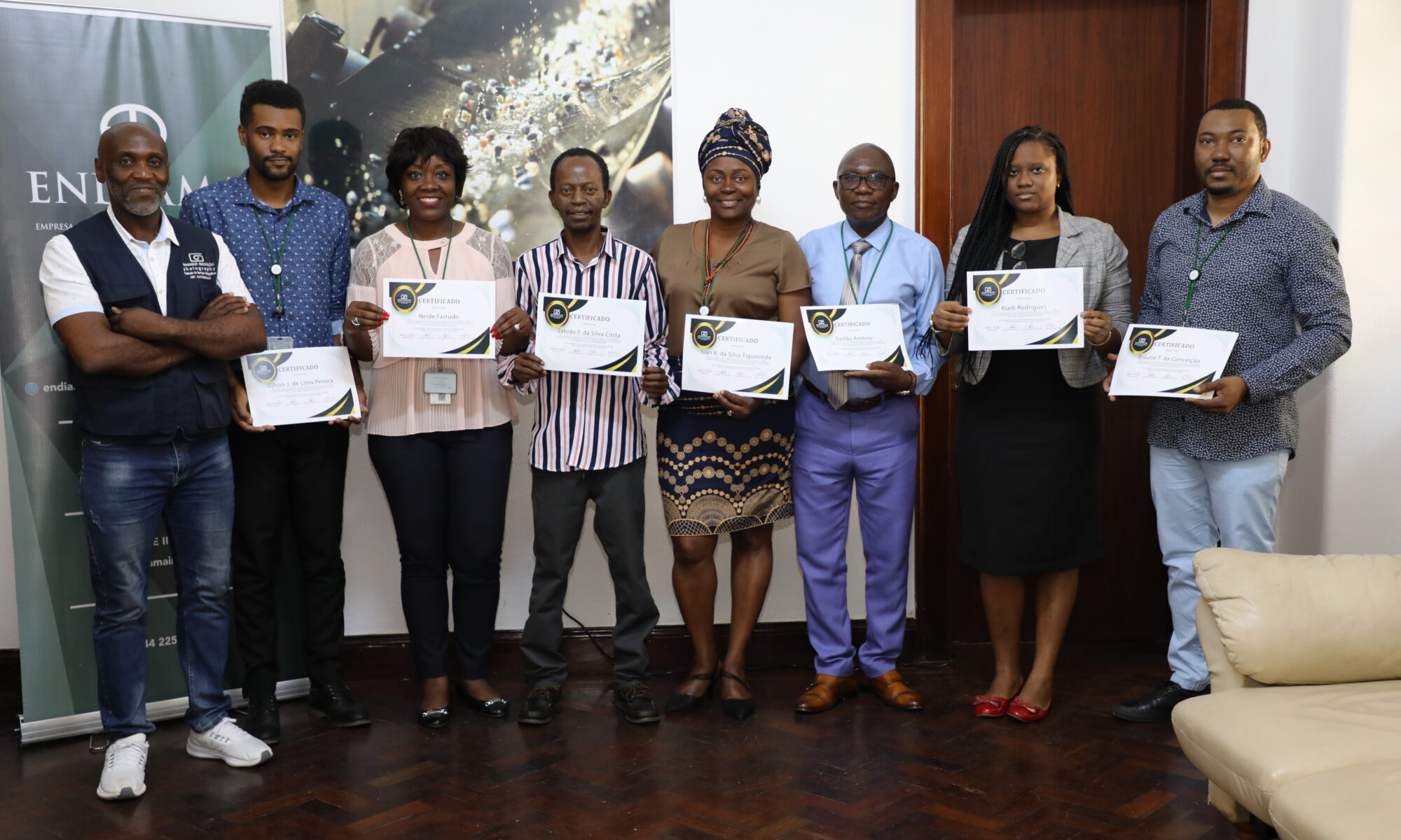 Procedeu-se nesta segunda-feira (20) nas instalações do complexo Hoteleiro da ENDIAMA a entrega de diplomas de capacitação aos técnicos do Gabinete de Marketing e Comunicação e Eventos pelo Director da empresa WANDERLEY PRODUÇÕES, Nambi Wanderley Quintino.