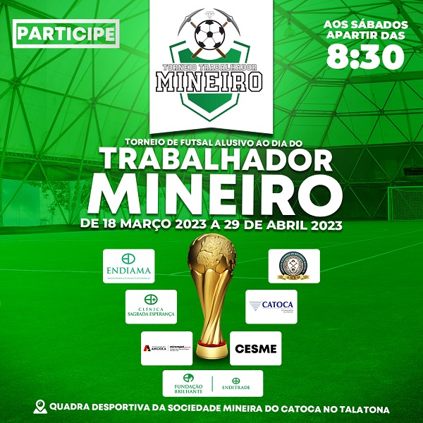 A EDNIAMA- E.P. organiza, de 18 de Março a 29 de Abril, o Torneio Trabalhador Mineiro, em Futsal, com a participação de sete equipas, nomeadamente a do MIREMPET, AGÊNCIA NACIONAL DE RECURSOS MINERAIS, ENDIAMA, CATOCA, CLÍNICA SAGRADA ESPERANÇA, MISTO FUNDAÇÃO BRILHANTE E ENDITRADE e o CESME.