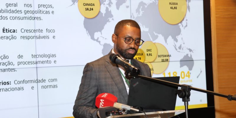 O responsável falava durante a apresentação das realizações e Outlook sobre a produção, comercialização e exportação de diamantes, que teve lugar no auditório do edifício sede do ministério dos Recursos Minerais, Petróleo e Gás.